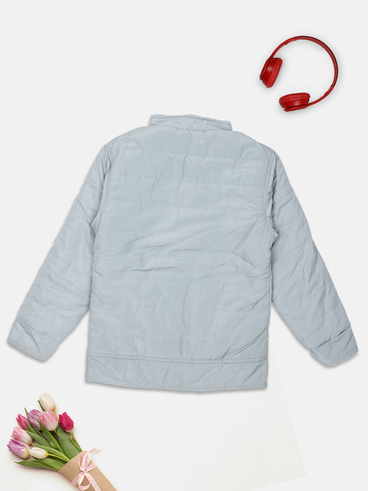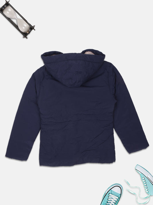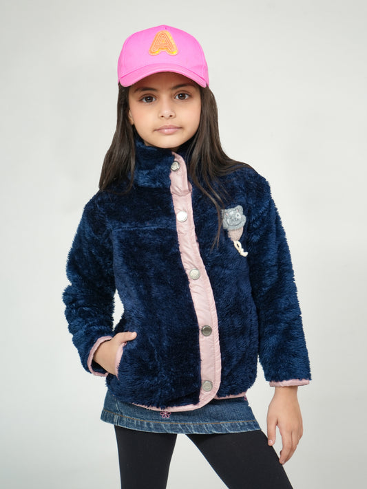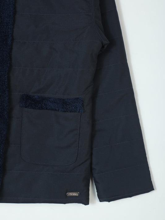 Pampolina Girls Solid Quilted With Fleece Jacket- Navy