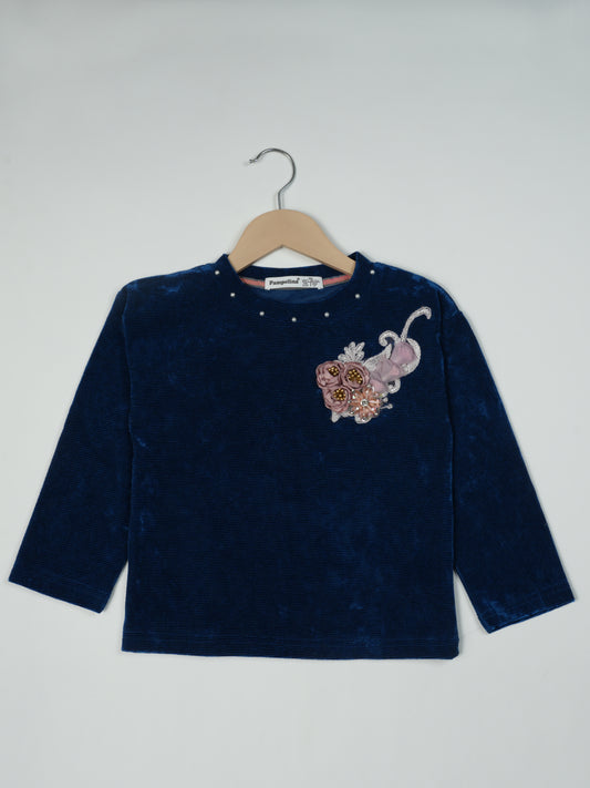 Pampolina Navy Sharing Top with Floral Embellishment