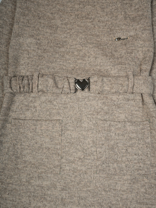 Pampolina Girls' Beige Ribbed Dress with Unique Design