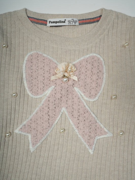 Pampolina Girls' Rib-Knit Long Sleeve Top with Lace-Up Sleeve Detail & Bows