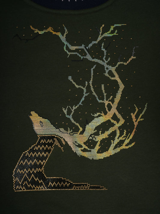 Pampolina Olive Sweatshirt with "Fox and Tree" Design