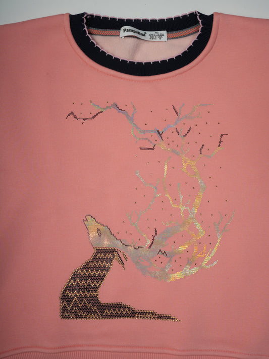 Pampolina Peach Sweatshirt with "Fox and Tree" Design