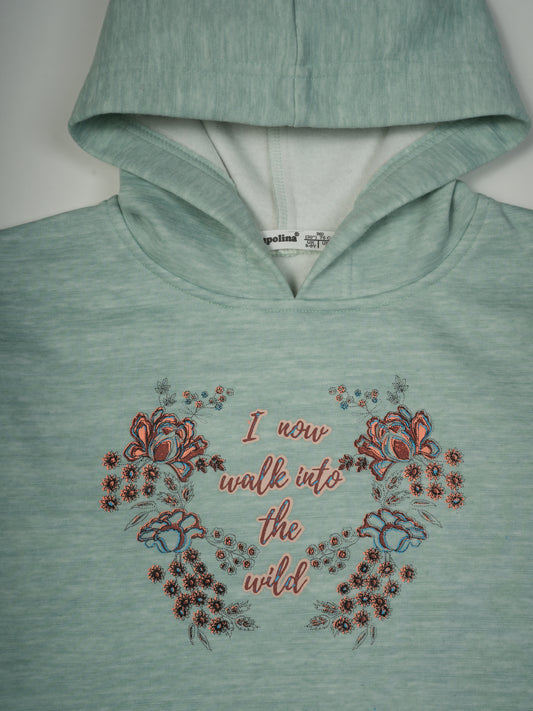 Pampolina Mint Hooded Sweatshirt with "I Now Walk Into The Wild" Design