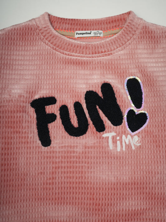 Pampolina Pink Waffle Sweatshirt with "Fun Time" Design