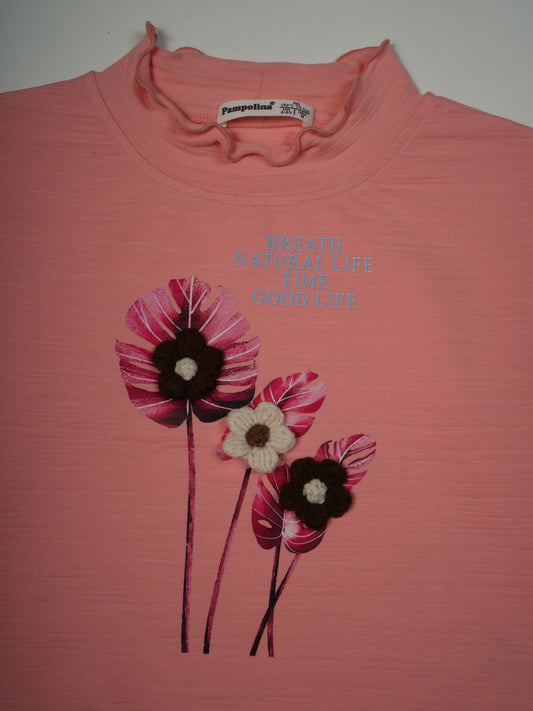 Pampolina Peach Sweatshirt with Floral Design and "Breathe Natural Life" Text