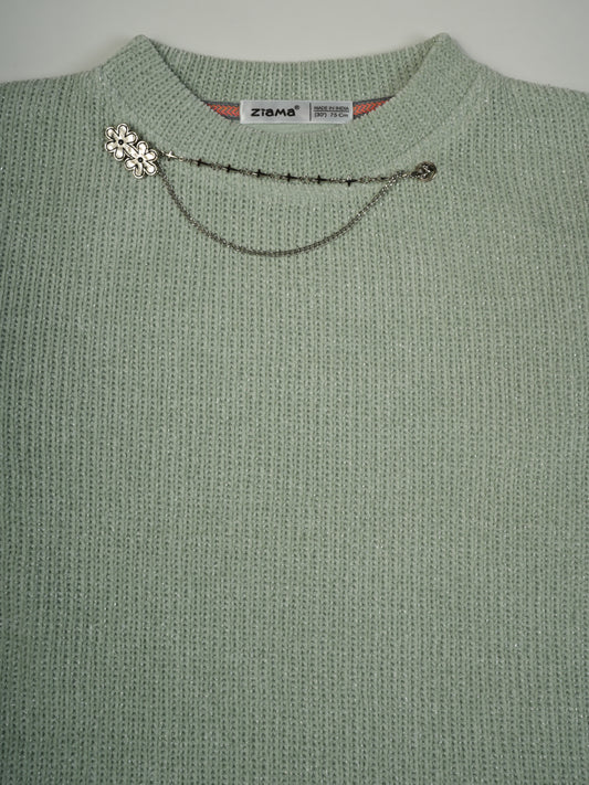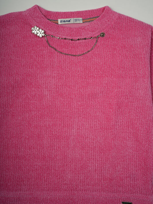 Pampolina Pink Ribbed Sweatshirt with Unique Chain Design