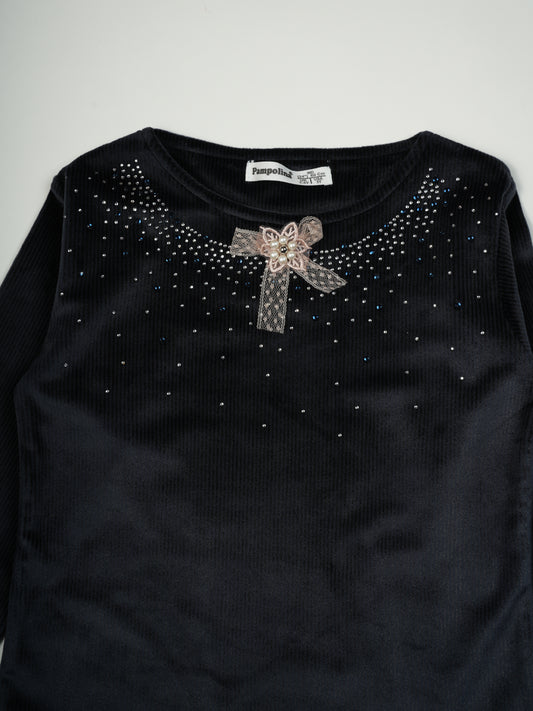 Pampolina Navy "Out to Dance"Sharing Top with Rhinestone Design and Bow