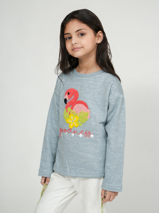 Pampolina grey Flamingo Embroidered Sweatshirt