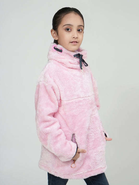 Chic Pink & Grey Teddy Fleece Half-Zip Hoodie for Girls