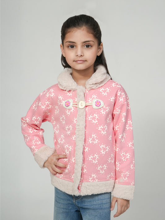 Pampolina Pink Floral Toggle Jacket with Faux Fur Lining