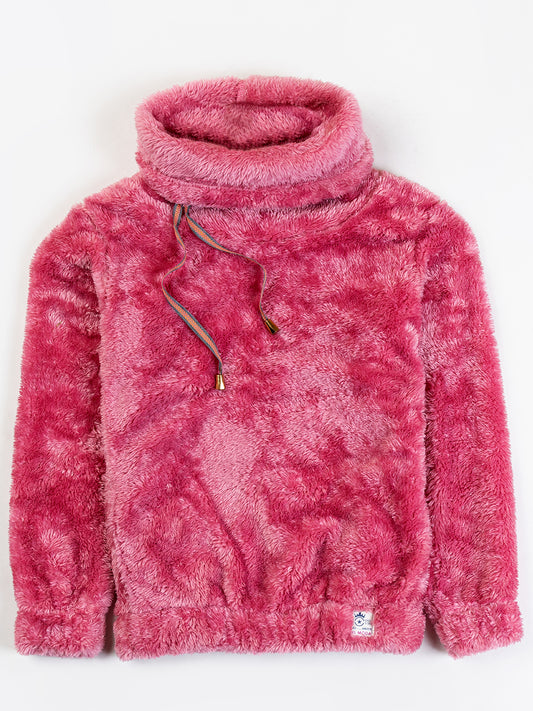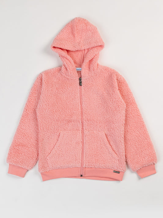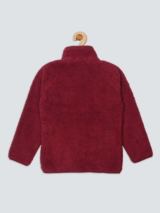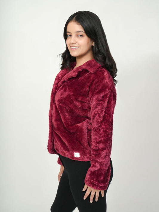 Pampolina Mehroon Fuzzy Button-Up Jacket with Pink Details