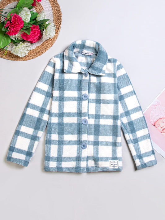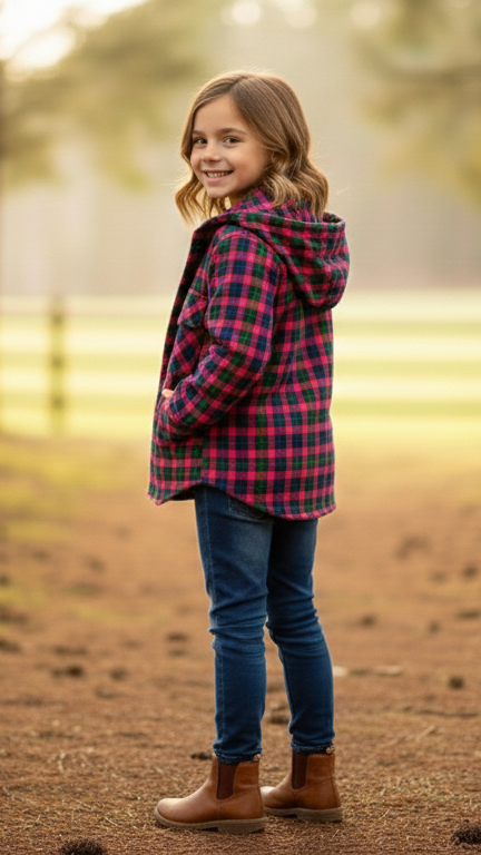 Girls' Button-Up Plaid Outerwear with Dual Chest Pockets