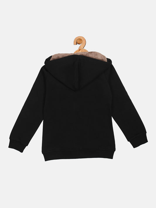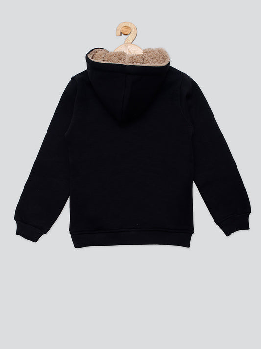 Pampolina Girls Solid Sweatshirt with Hoddie and Zip-Black