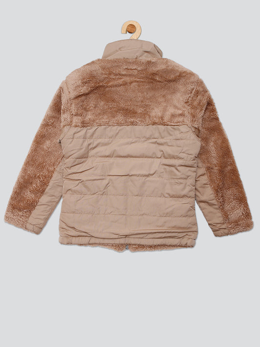 Pampolina Girls Solid Quilted With Fleece Jacket- Fawn