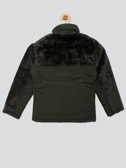 Pampolina Girls Solid Quilted With Fleece Jacket- Olive