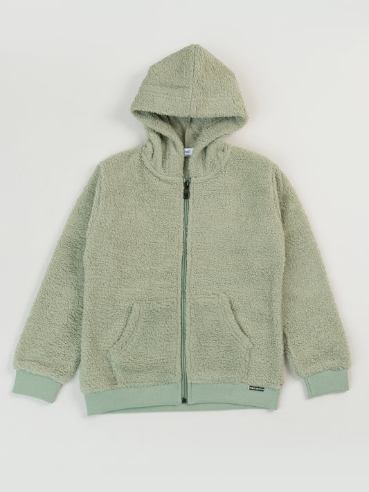 Pampolina Girls Solid Sweatshirt With Hoddie- Green