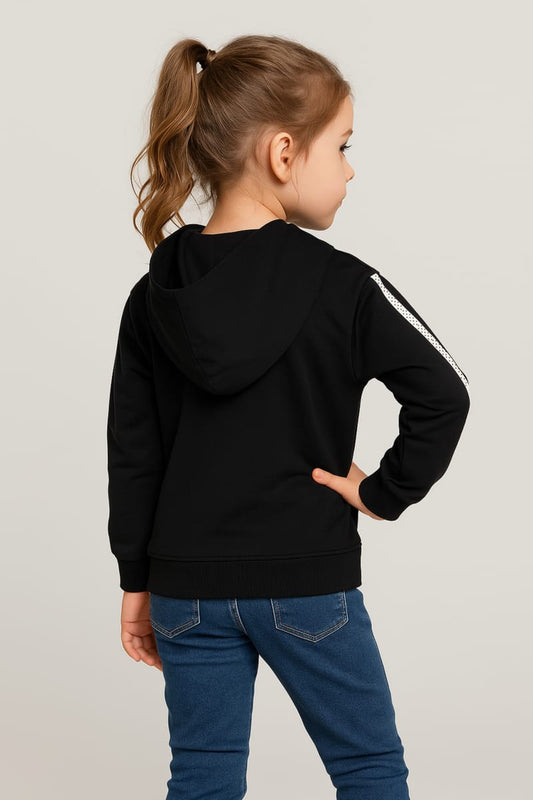 Chic Girls' Black Long-Sleeve Top with Detailed Heart/Flower Graphic