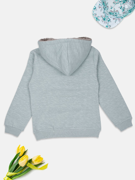 Charcoal Cotton Sweatshirt with Front Zip– Casual & Comfortable Girls Sweatshirt