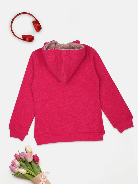 Pampolina Girls Solid Sweatshirt With Hoddie- Magenta