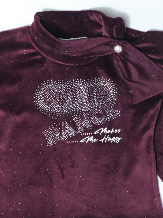 Pampolina Girls Printed Round neck Co-ord Set- Mahroon