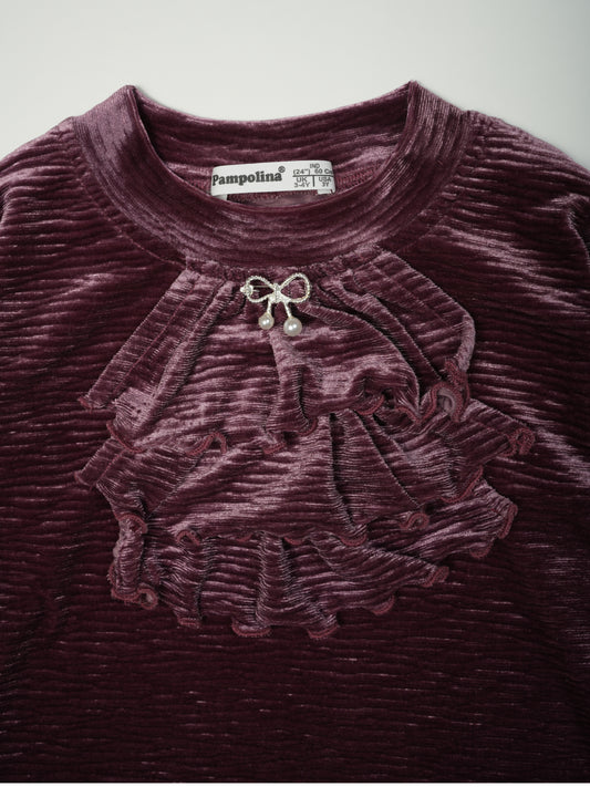 Pampolina Girls' Grey Sharing Top with Elegant Ruffled Collar