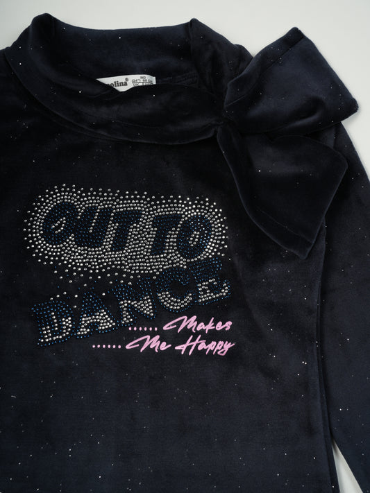 Pampolina Navy "Out to Dance"Sharing Top with Rhinestone Design and Bow