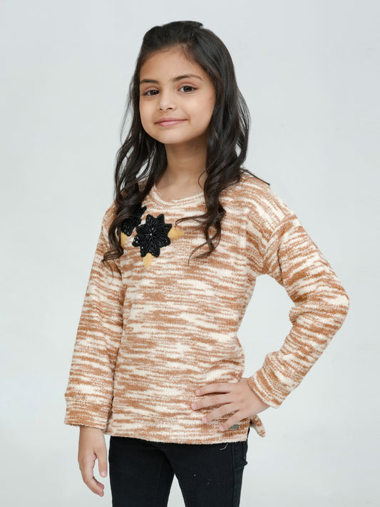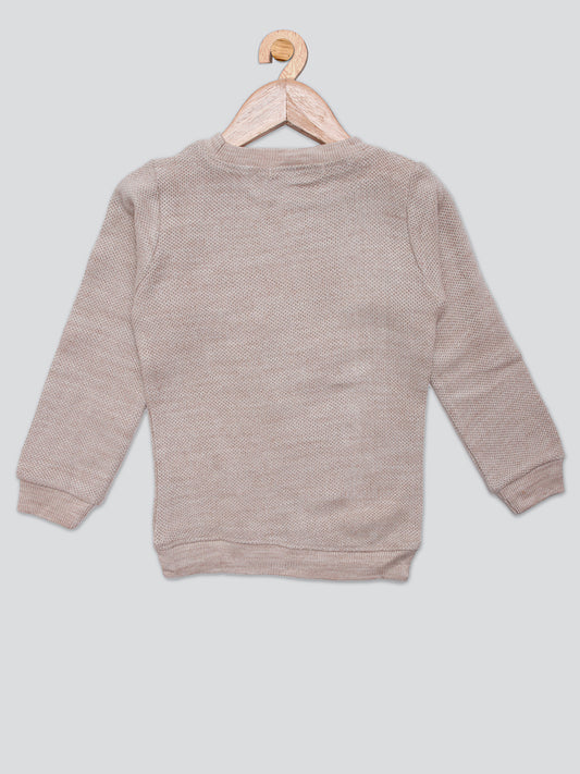 Pampolina Girls Sequined Printed Woolen Top-Fawn