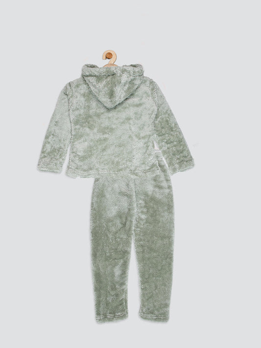Butterfly Extra Warm Girls Solid Co-ord Set-Pista