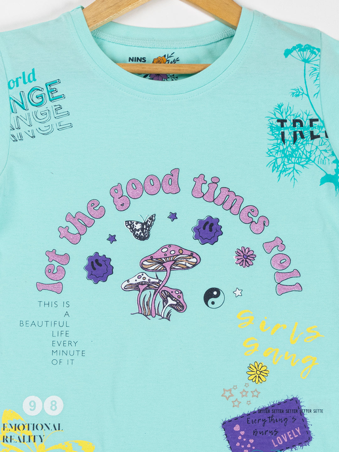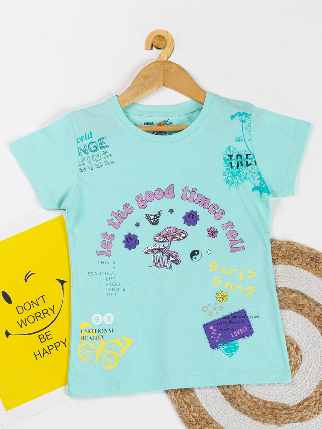 Pampolina Girls Flower Printed Stretchable Top-Sky