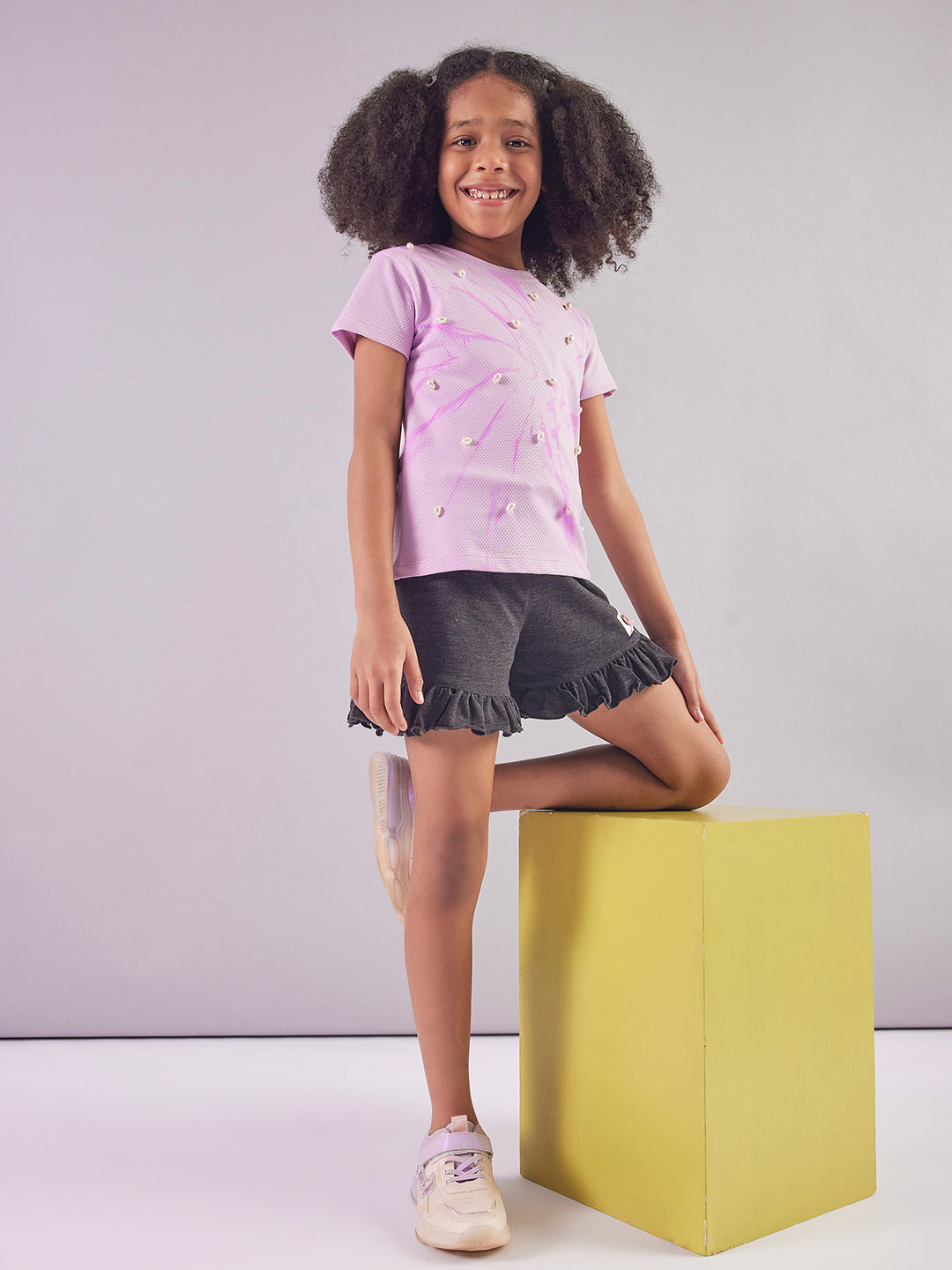Pampolina Girls Sequined Printed Top- Lavender