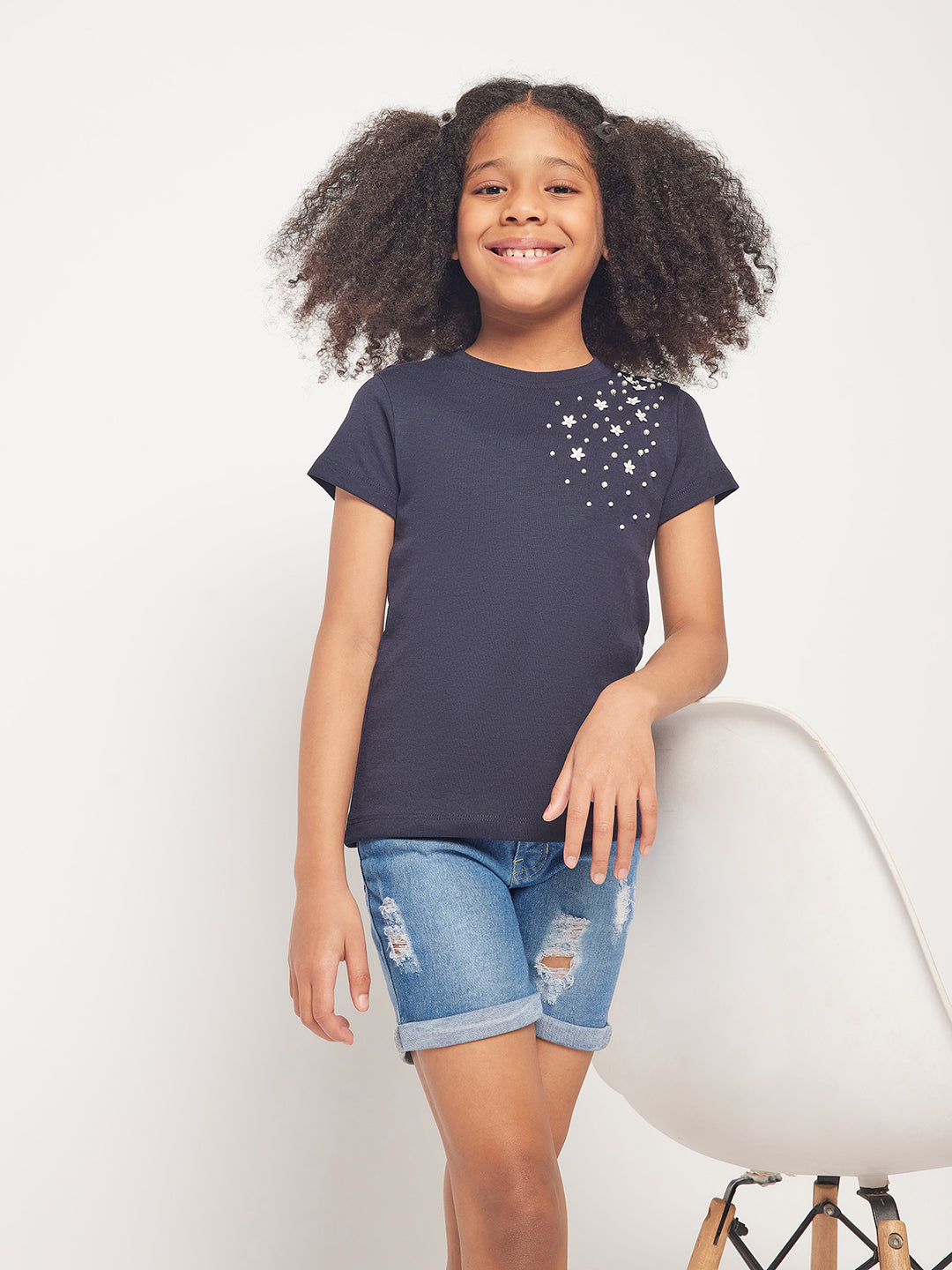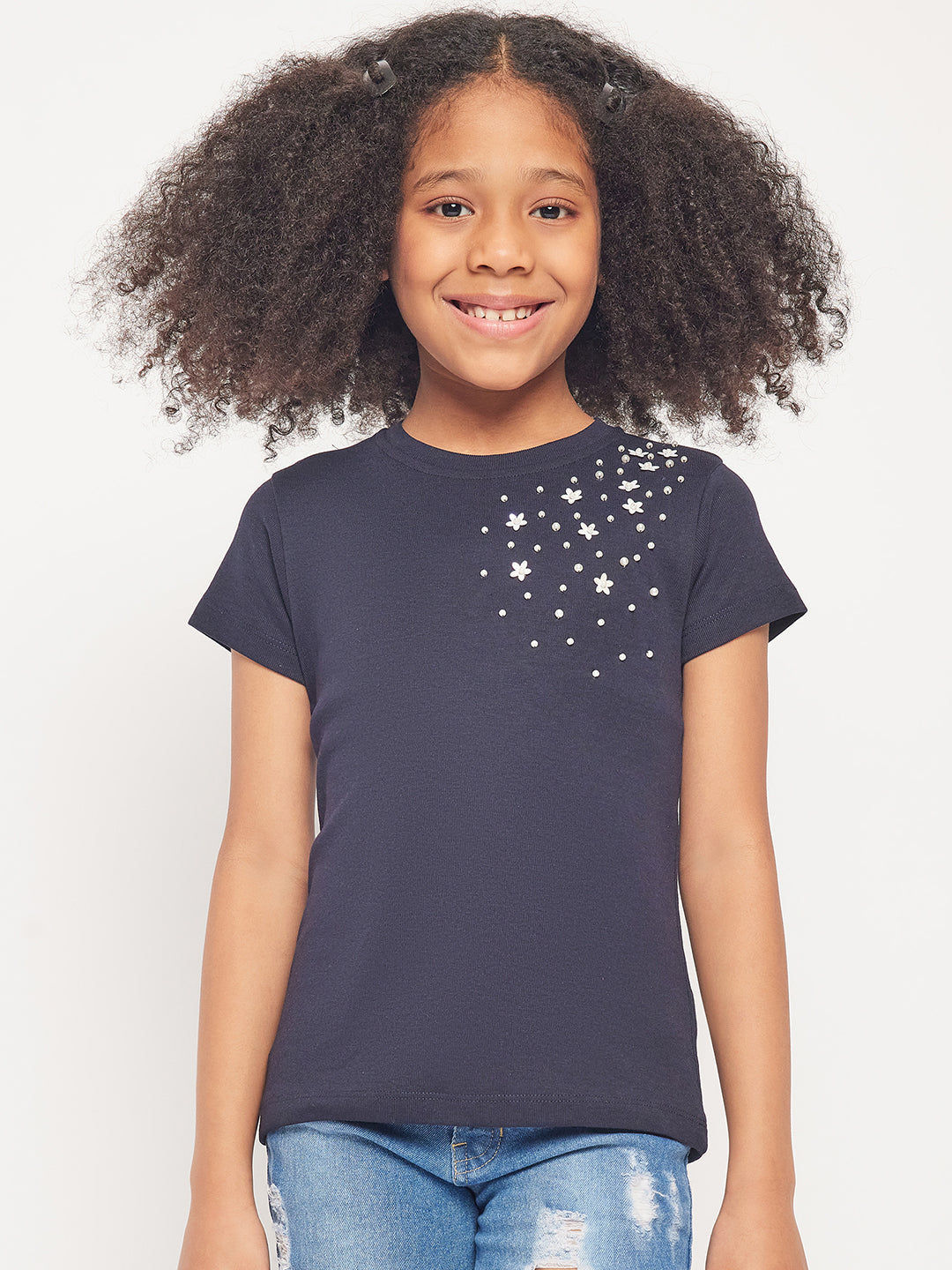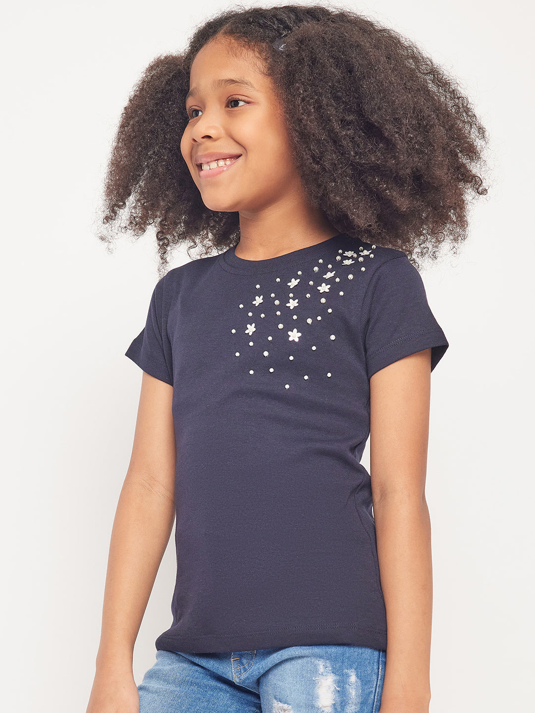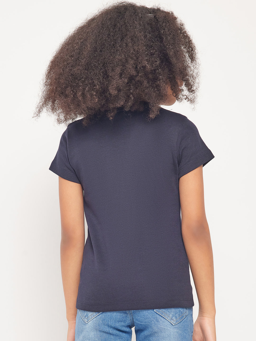 Pampolina Girls Solid Half Sleeve Top- Navy Blue