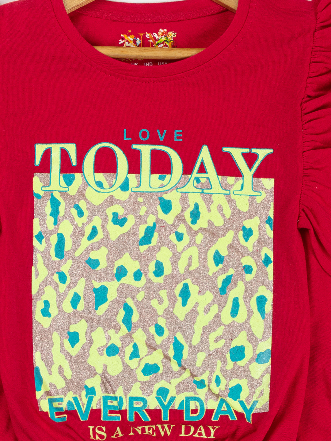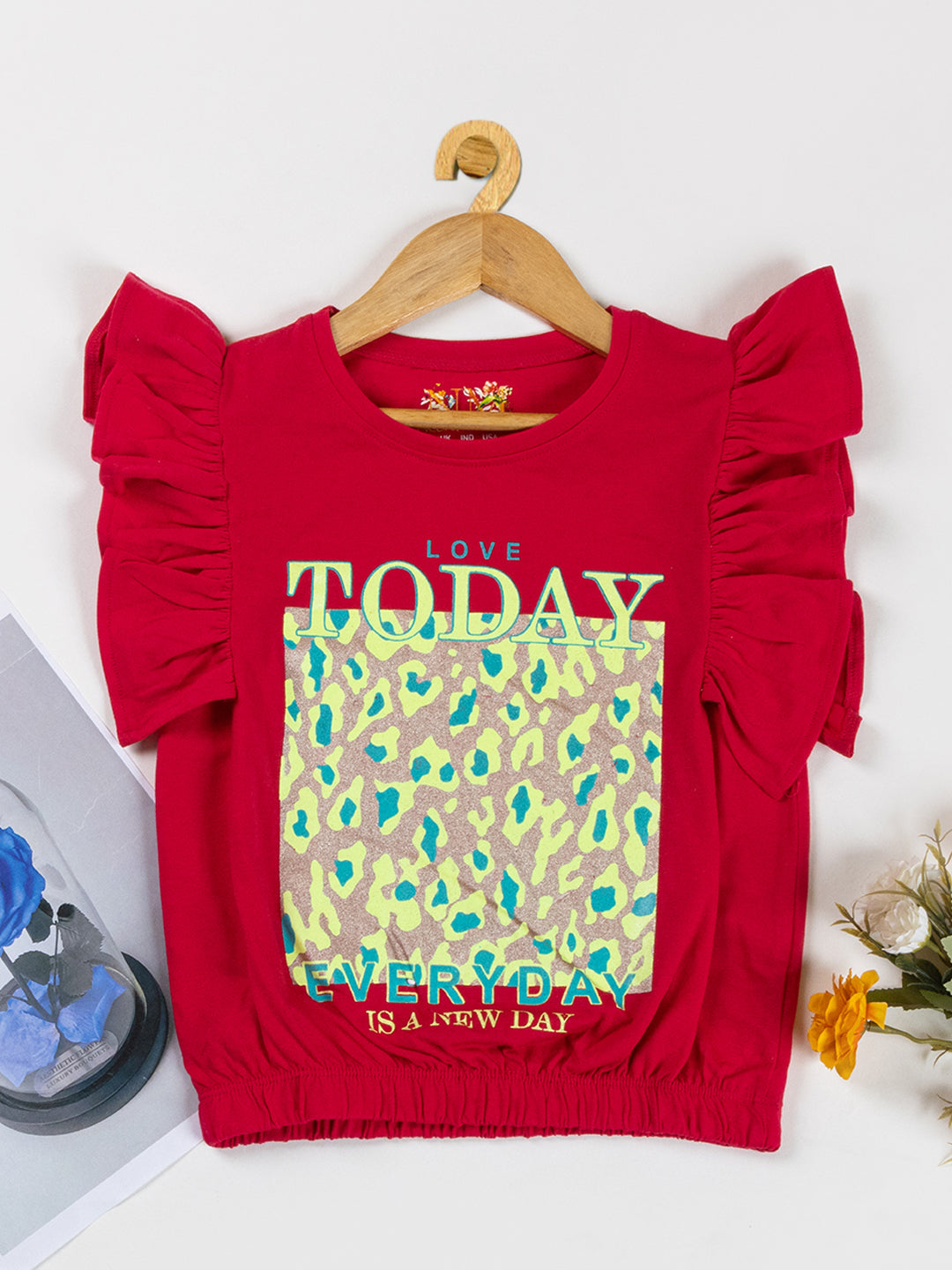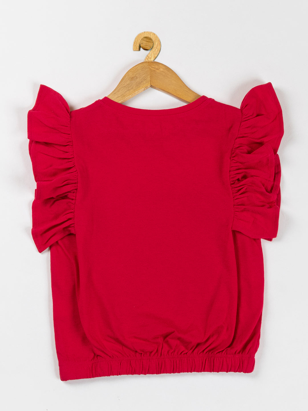 Pampolina Girls Printed Top With Puff Sleeve & Waist Elastic-Magenta