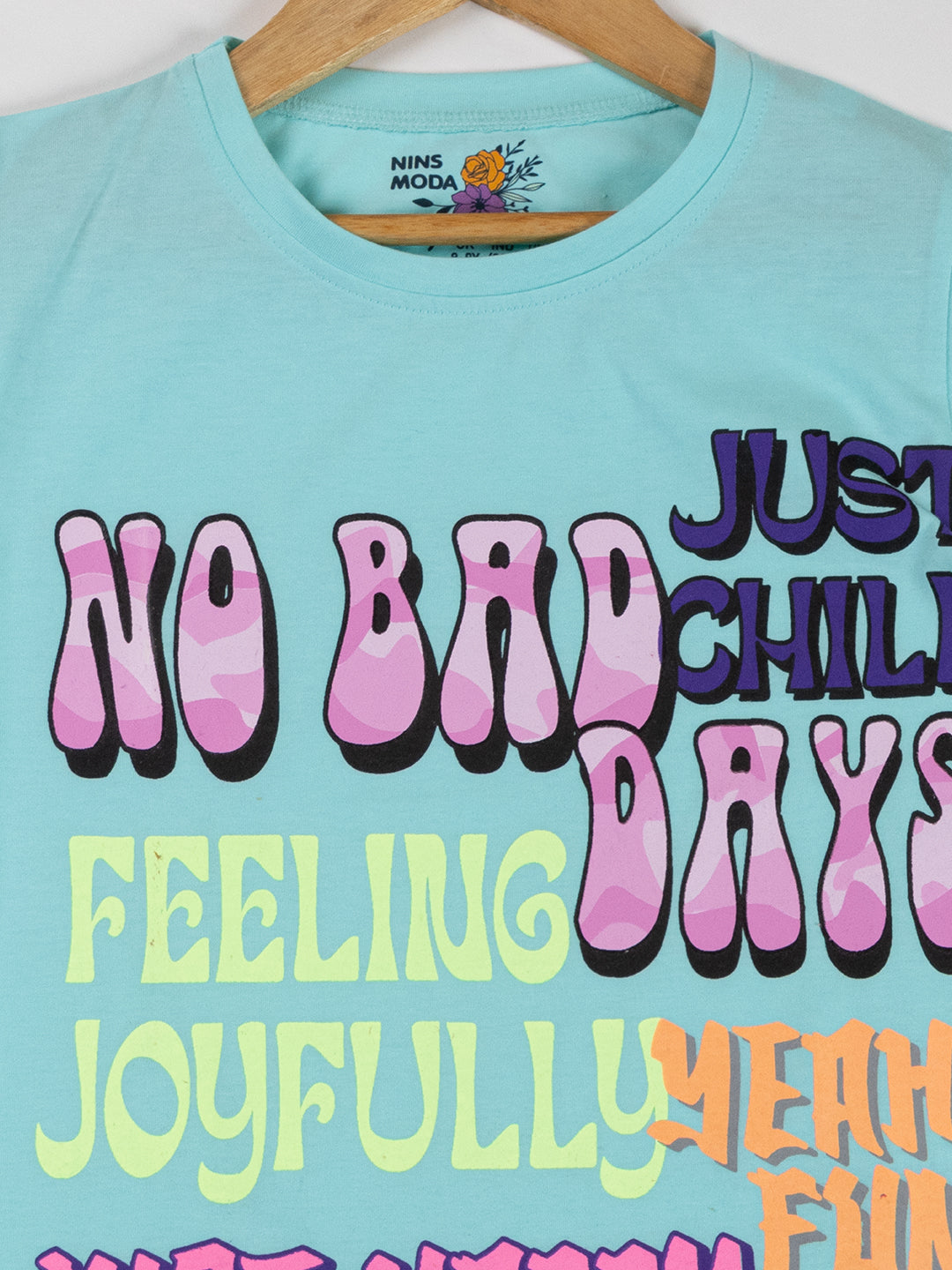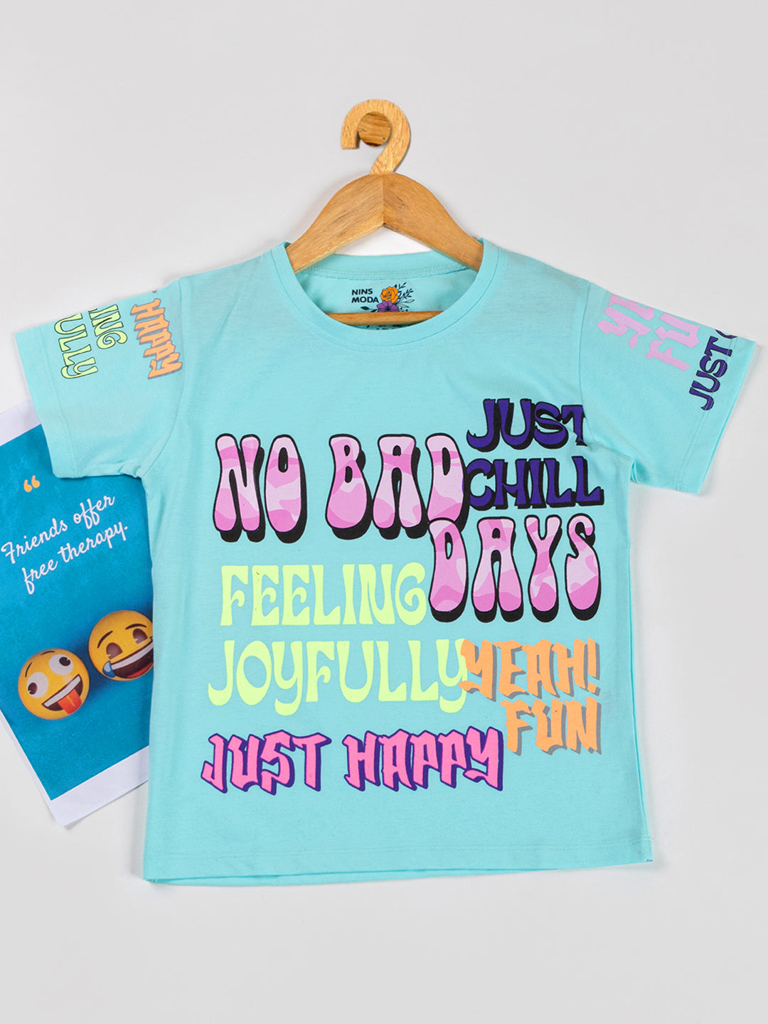 Pampolina Girls Printed & Half Sleeve Top-Turquise