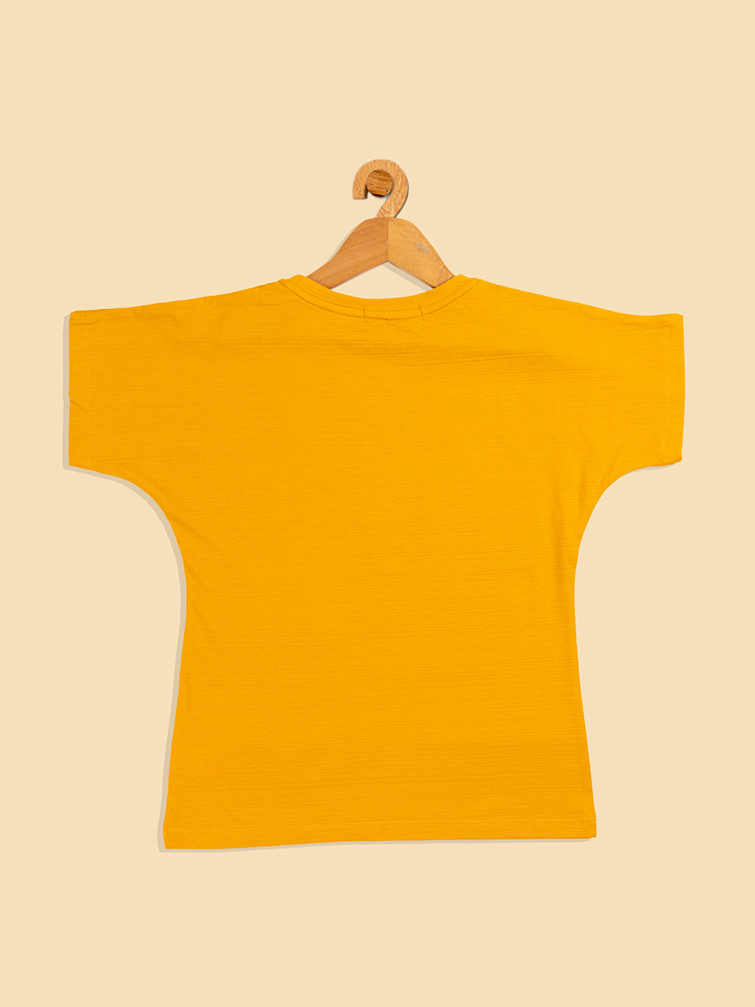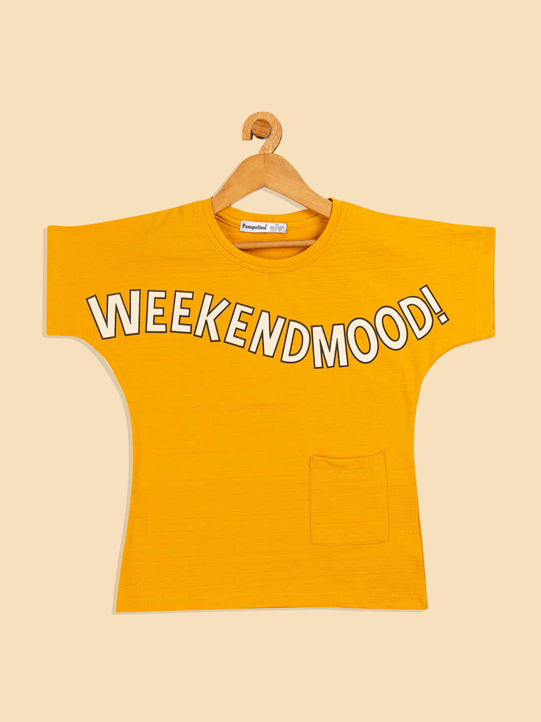 Hey girls, get ready for a fun-filled weekend in our must-have Pampolina Girls Weekend Printed Top-Mustard! Made with a mix of cotton and polyester, this top has a playful print that will surely catch some eyes. Plus, its round neck and half sleeves make it perfect for any casual hangout. Whether you're headed to the mall or a picnic, this knit top is a must-have for any stylish female. Made in India, this top is the perfect combination of comfort and style. So, why wait? Grab yours now!